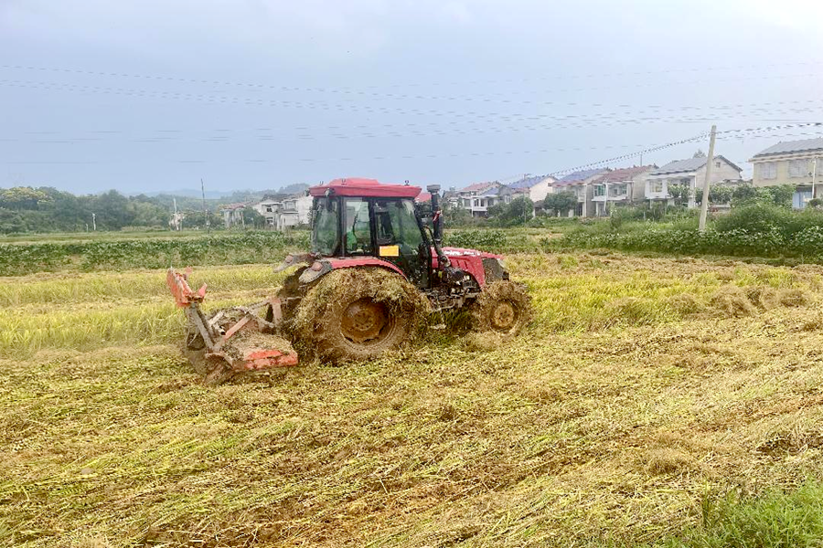 在凌津滩社区连片稻田,农机手按技术专班指导的参数调试旋耕机,使粉碎后的秸秆与土壤充分混合。截至目前,全镇已帮助农户完成秸秆还田9000余亩,带动200余户农户采用科学方式处置秸秆。