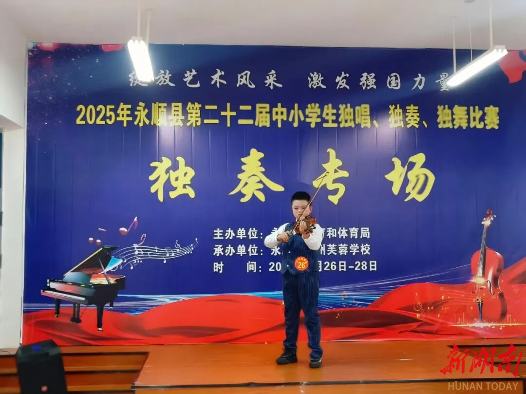 新湖南客户端9月29日讯(通讯员 范梦瑶 刘亚南)9月27日,永顺县第二十二届中小学生独唱、独奏、独舞比赛在溪州芙蓉学校艺体馆举行,吸引了来自全县的288名优秀学子同台竞技,一展风采。