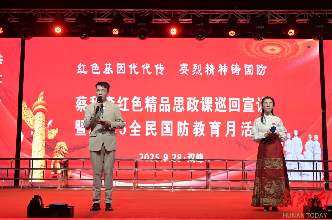 湖南日报·新湖南客户端9月29日讯(记者 曾玉玺 通讯员 胡后继 戴威伟)9月28日晚,双峰县在新时代文明实践中心(曾国藩广场)举行以“红色基因代代传 英烈精神铸国防”为主题的蔡和森红色精品思政课巡回宣讲暨2025全民国防教育月活动。