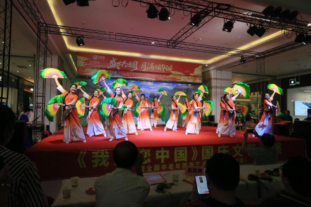 湖南日报·新湖南客户端9月29日讯(通讯员 隆柏兰 伍先锴 罗桂成)金秋送爽举国欢腾。9月28日华盛堂购物中心内歌声嘹亮、舞姿翩跹“热烈庆祝中华人民共和国成立76周年‘我爱您中国’文艺汇演暨全国中老年国潮艺术大奖赛(选拔赛)”在此隆重举行。活动以艺术为载体汇聚邵阳市中老年人的爱国情怀与艺术活力吸引领导嘉宾、附近居民等500余人现场观看共同为祖国华诞献礼。