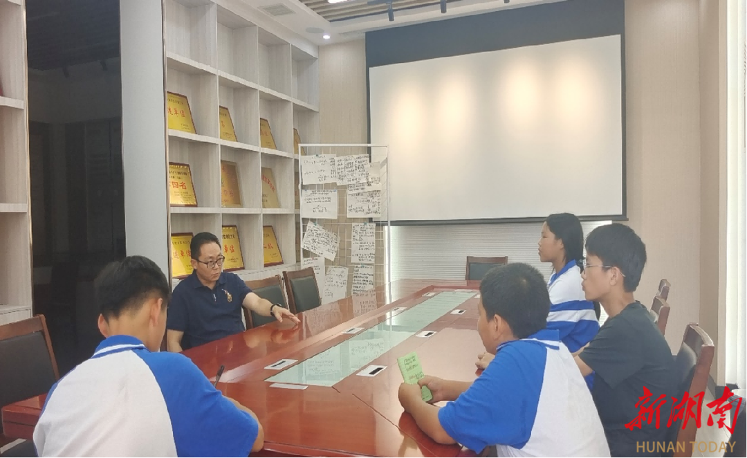 科教新报·新湖南客户端讯(通讯员 覃敏 唐美琼)“校长,您每天最早到校时最先关注什么?”“我校‘仁勇宏睿’的校风是怎样融入课堂的呢?”9月28日,石门县洞国学校八年级129班的教室内,一场特殊的“校长访谈”火热开展。6组学生以“小记者”身份与洞国学校校长唐显寅面对面交流,将语文课本上的新闻单元知识融入实践,以学生的身份探寻校园管理细节,感受教育治理的温度。
