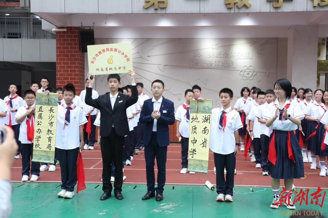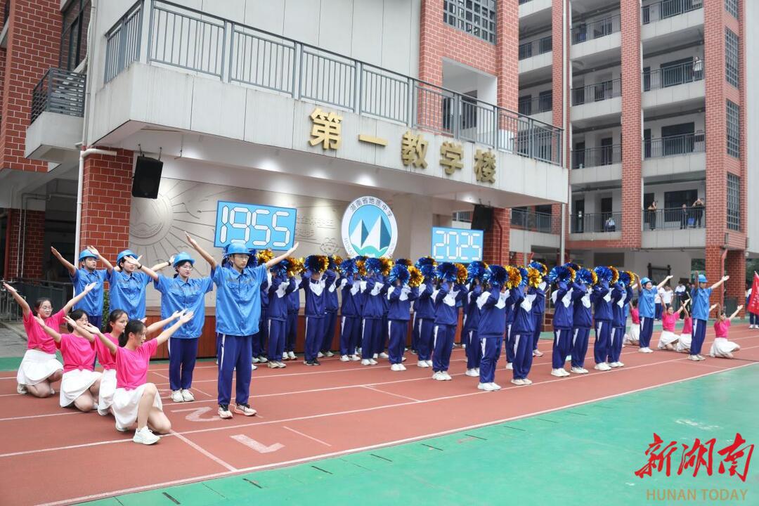 从1955年创校之初“地质部中南地质局长沙子弟学校”在长沙下黎家坡的艰难创业,到1970年创办中小学、师生们“烧窑硼砖建教学楼”的奋斗岁月;从1981年正式更名为“湖南省地质中学”,宣告深耕教育事业的坚定决心,到2001年获授“湖南省重点中学”牌匾的辉煌时刻;再到近年来移交长沙市政府管理、加入雅礼教育集团,直至2025年被评为“全国科学教育特色校”……学校发展史上的每一个关键瞬间,都被学子们用情景表演、服装道具和铿锵解说生动复刻。