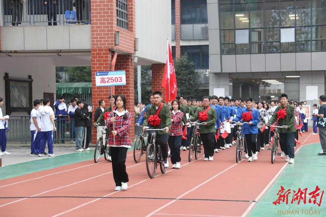 科教新报·新湖南客户端讯(通讯员 刘敏)运动会开幕式的跑道上,一群身着上世纪工装的“建设者”,推着“二八大杠”自行车迎面走来……这不是话剧舞台,而是湖南省地质中学2025年校运会开幕式上的真实一幕。9月26日下午,该校为期三天的“七秩荣光,青春飞扬”阳光运动会,以一场别开生面的“校史穿越剧”拉开序幕,让全体师生重温了母校七十年的办学征程。