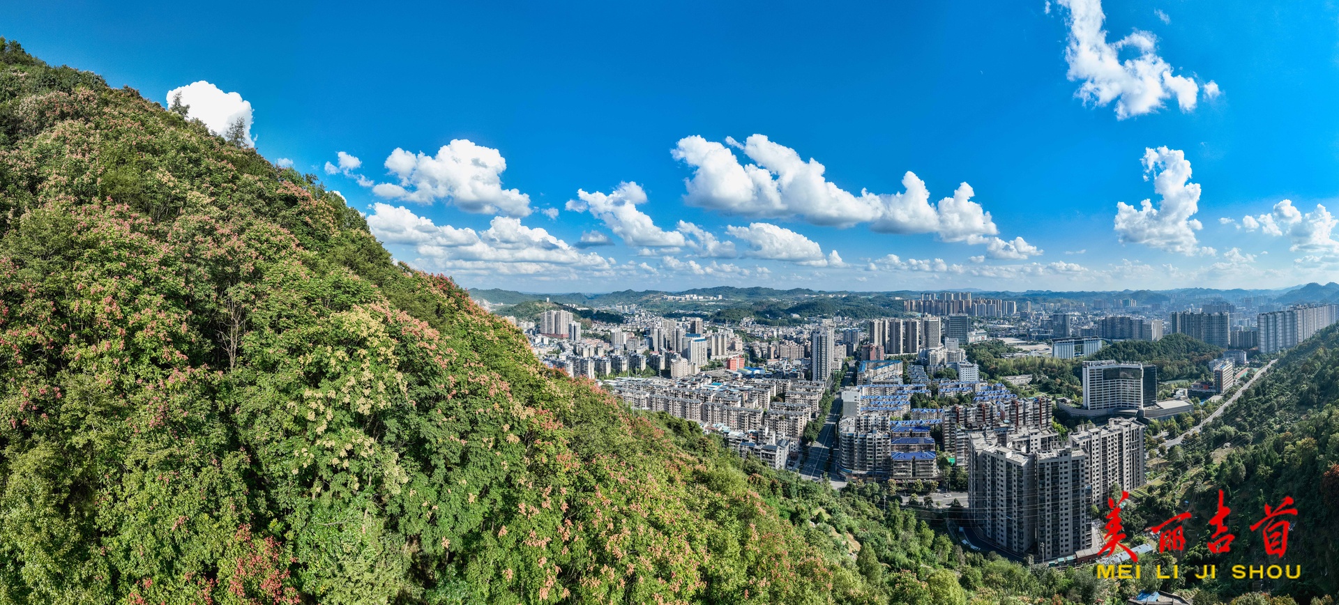9月28日,吉首市乾州街道西一环大坡,漫山的栾树迎来最佳观赏期,五彩斑斓的秋色与城市建筑在蓝天白云下相映成趣,呈现出醉人景象,为吉首山城增添了一道独特的秋日风景。