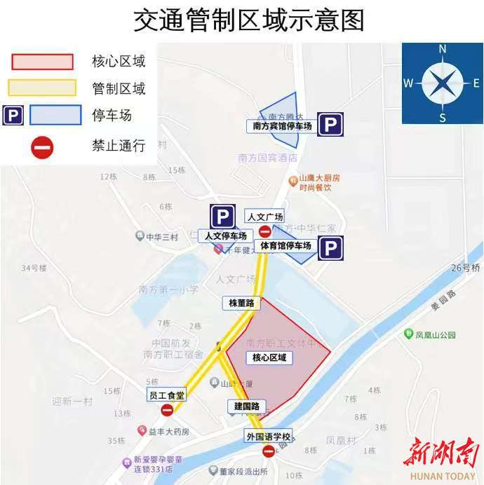 为确保“厂声音”歌唱比赛期间道路交通安全、有序、畅通,在株董路人文广场路口、株董路员工食堂路口、建国路解放桥头路口设置核心区域管制点,在管制点形成的合围道路区域,设置为交通管制区域。