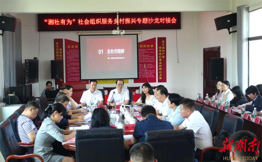 当天,以“党建引领聚合力,湘社有为促振兴”为主题的“湘社有为”社会组织协成合作服务乡村振兴专题沙龙暨资源对接会,在娄底市双峰县花门镇大石玉村举行。省民政厅社会组织管理局、双峰县相关领导、省级社会组织负责人、驻村工作人、党员代表等40人参加会议。
