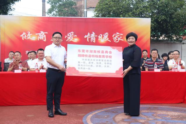 东莞市湖南攸县商会长期关注家乡公益事业发展,此次捐赠活动体现了商会企业家们对特殊教育事业的重视与支持,彰显了企业家们的责任担当,为特殊教育事业发展注入温暖和力量。