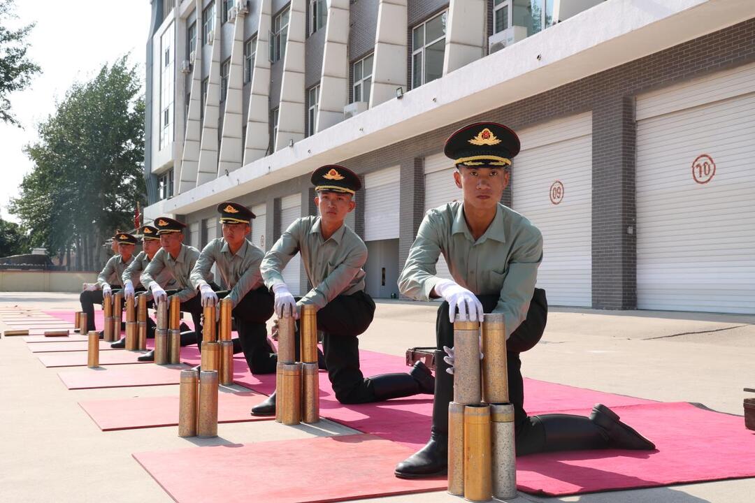 据介绍,礼炮每一门炮由3名炮手负责,3名炮手采用5步就炮,跪姿同时上前,炮手所有动作要做到“盲取盲送”。3名炮手的分工各不相同。三炮手负责从弹架取弹,并将重达7斤的礼炮弹交给二炮手。为了交接稳定,三炮手需双手持握礼炮弹,交给二炮手,二炮手接弹回身要稳,转身要快,回身之后弹体要正,在听到口令后迅速将弹体装入弹膛里。由于二炮手需要回身用单手接弹,这一动作增大了弹药平稳交接的难度,因此对二炮手的动作精准度和发力控制都提出了极高要求,二炮手也是这门炮的炮长,负责整门炮的装填递弹,也要同时兼顾对一炮手和三炮手的相互照应。