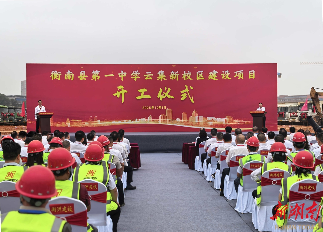 湖南日报·新湖南客户端10月1日讯(记者 吴雅敏 通讯员 康廉泽 胡丁丁)10月1日,衡南县第一中学云集新校区建设项目开工仪式在衡南县云集街道滨江南路举行,标志着该项目正式进入施工建设新阶段。衡阳市政协主席吴曙光出席仪式并宣布项目开工。