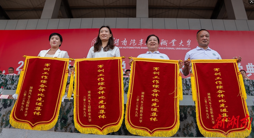 该校党委委员、副校长刘平国宣读了2025级新生军训工作各类先进表彰决定。主席台就座的校领导和各二级学院领导分别为军训获奖先进集体和个人颁发了锦旗和荣誉证书。其中,车辆工程学院、车辆运用学院、机电工程学院、军士教育学院4个二级学院获评“军训工作综合评比先进集体”。