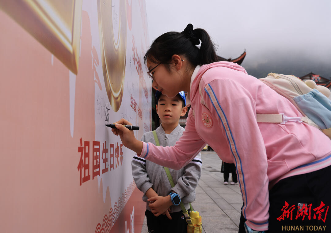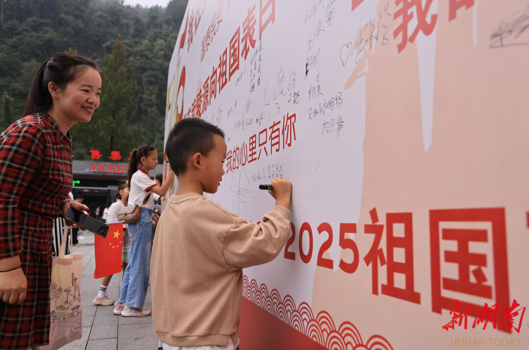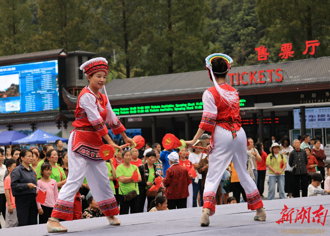 10月1日,湖南张家界市武陵源区开展丰富多彩的庆祝活动,表达对祖国的美好祝愿,欢度国庆佳节。通讯员 吴勇兵 摄影报道