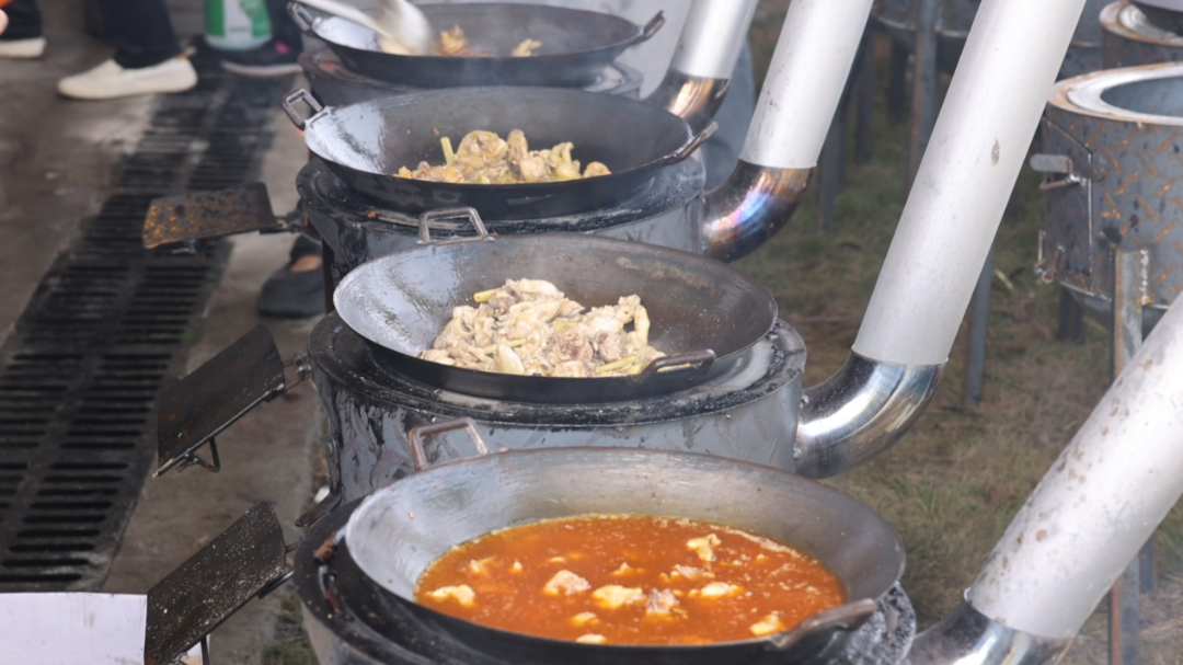 小院铁锅鸡在上午便拉开节日帷幕。乡村大舞台特邀乐队以一曲《大中国》点燃全场,浓厚的国庆氛围扑面而来。现场五十口铁锅依次排开,厨师穿梭其间,忙而有序地为顾客呈上热腾腾的美食。吃鸡擂台赛、啤酒争霸等互动游戏吸引了众多年轻人参与,现场欢笑声、喝彩声不断,气氛持续高涨。