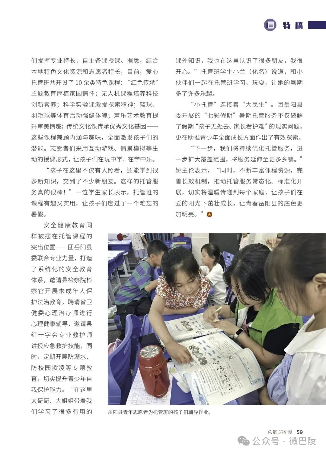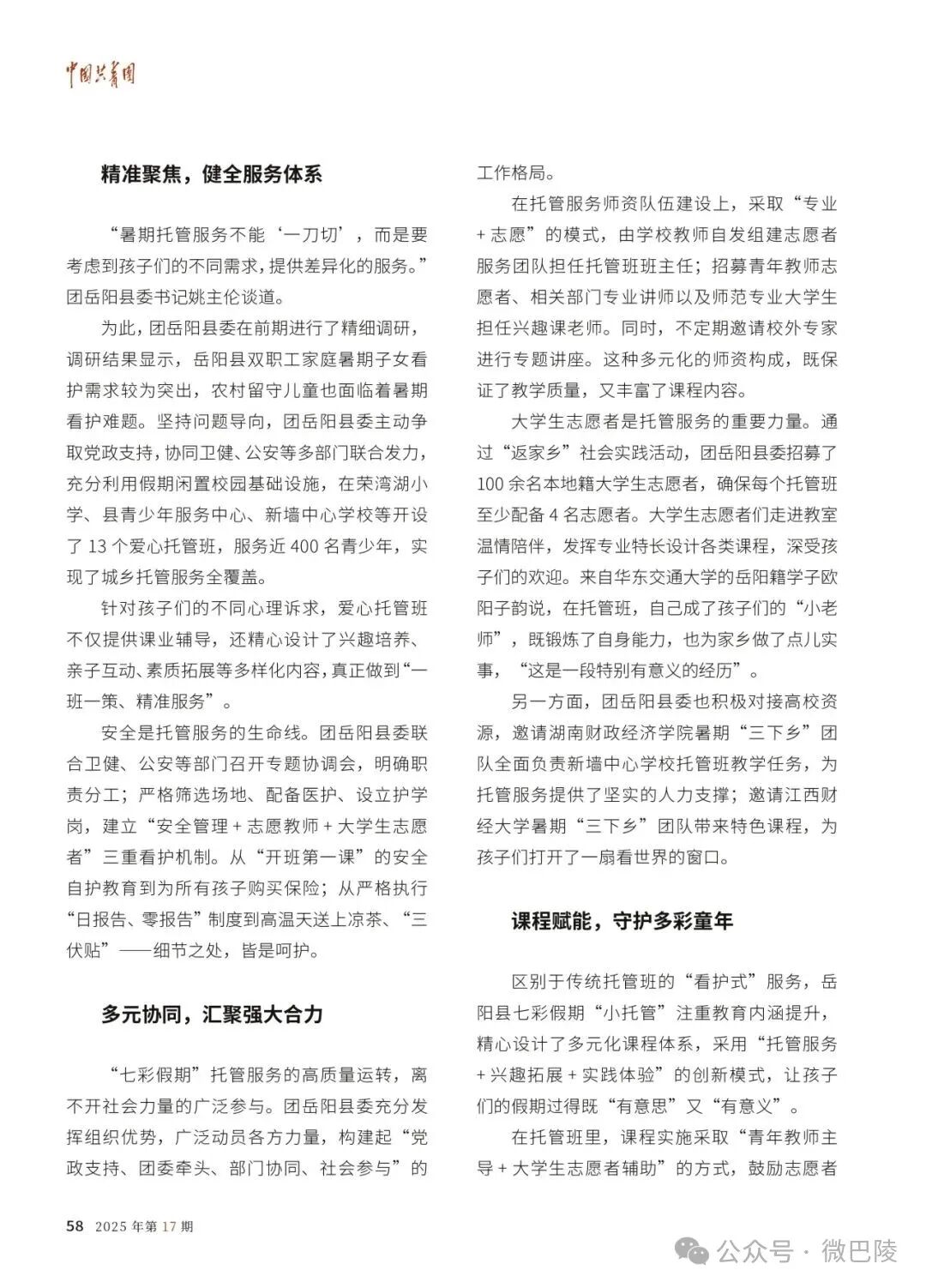 近日,《岳阳县:“小托管”服务“大民生”》,在《中国共青团》杂志2025年第17期刊发。