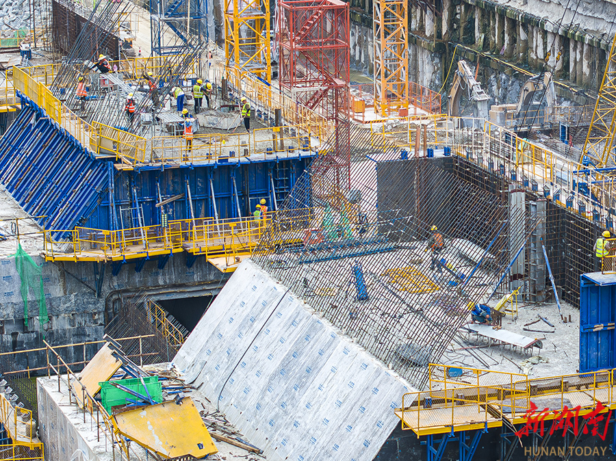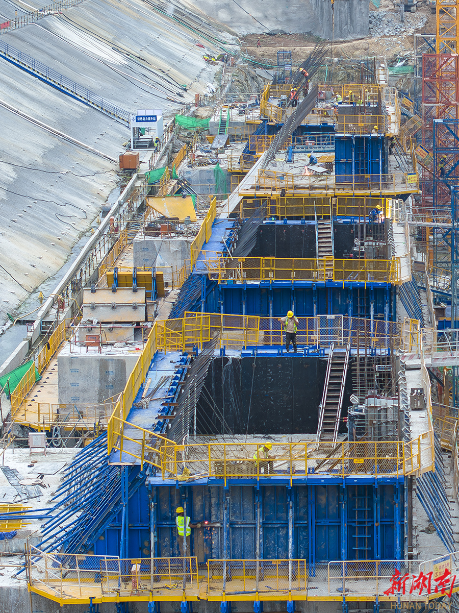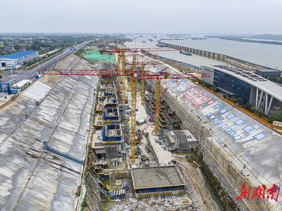 10月3日,湘江长沙至城陵矶一级航道项目(长城航道)建设现场一片繁忙。400余名建设者坚守岗位,全力冲刺湘江长沙综合枢纽三线船闸及航道疏浚工程建设,确保完成年度目标。 湖南日报全媒体记者 童臻熙 摄