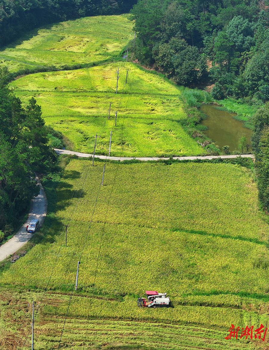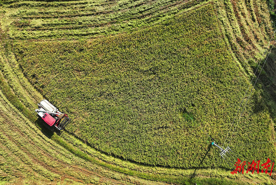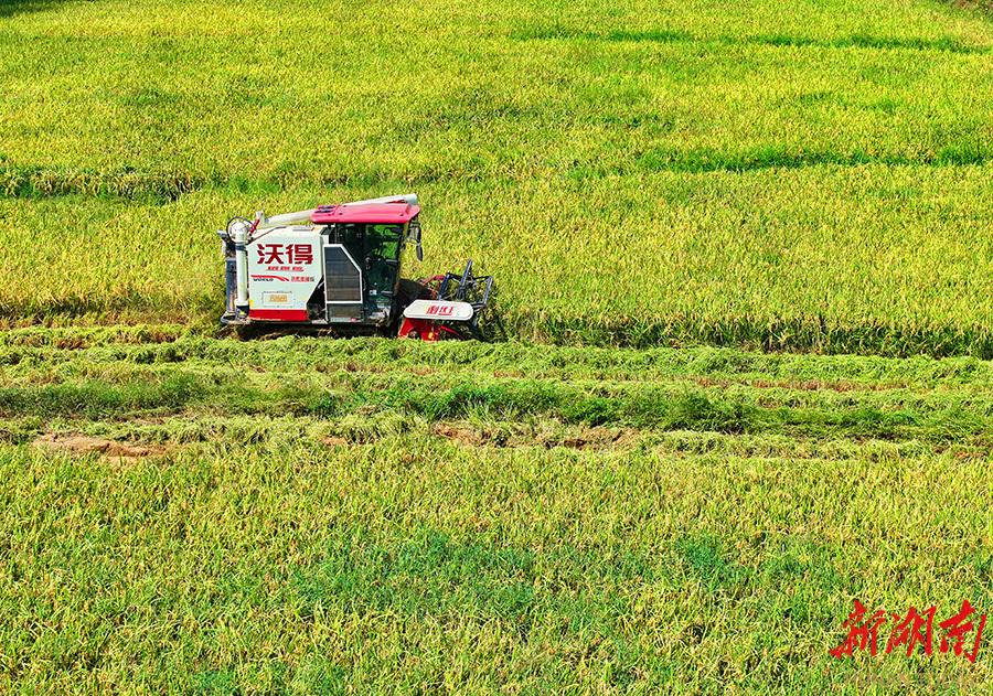 10月3日,衡山县长江镇,村民在操作农机抢收晚稻。当前正值秋粮收割季,衡阳市各地农户利用晴好天气加紧机收作业,有序开展稻谷晾晒,确保粮食颗粒归仓。 曹正平 夏建军 摄影报道(湖南图片库)
