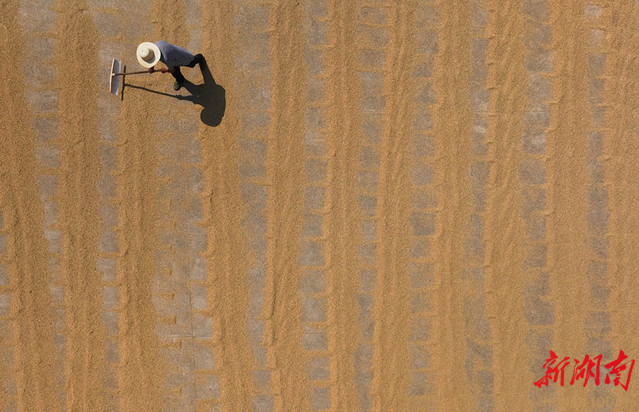 10月3日,衡山县长江镇,村民在晾晒稻谷。当前正值秋粮收割季,衡阳市各地农户利用晴好天气加紧机收作业,有序开展稻谷晾晒,确保粮食颗粒归仓。 曹正平 夏建军 摄影报道(湖南图片库)