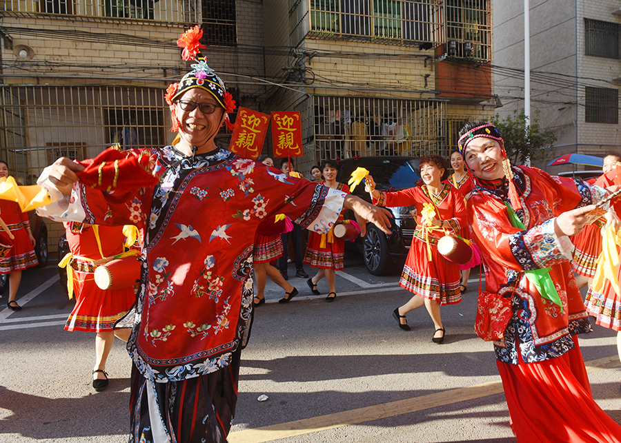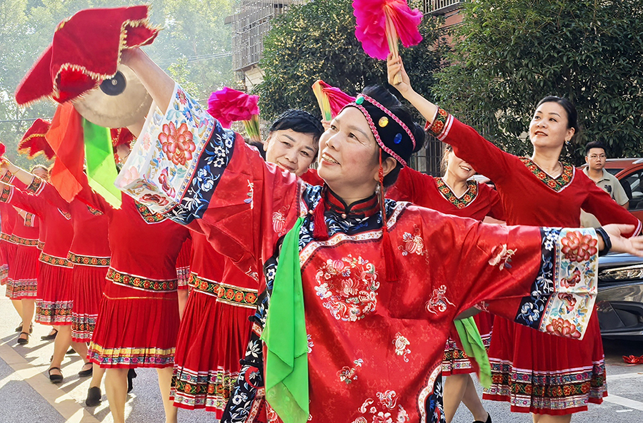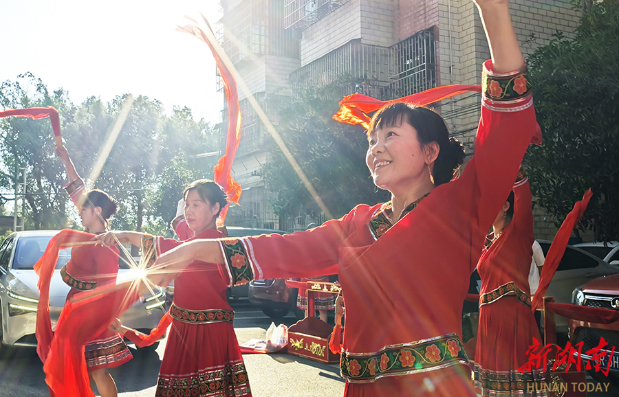 10月3日,嘉禾县珠泉镇鳌峰社区,民间文艺团体在表演民俗节目。“双节”期间,该县组织文艺团体开展“民俗文化庆国庆”巡演,通过舞龙舞狮、花灯戏等传统艺术形式,展现地方文化特色,为群众送上节日文化大餐。 黄春涛 摄(湖南图片库)