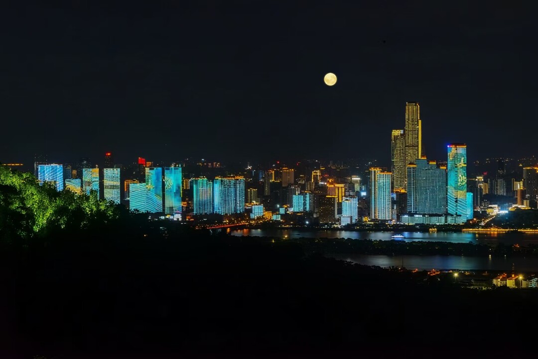 若想把“麓山月色”与“长沙全景”一并收藏,“长沙之眼”是不二之选,能给你“手可摘星辰,满目皆团圆”的上佳体验。登上45米的观景台,随着全透玻璃环绕的视窗漫步,岳麓山的层林、橘子洲的轮廓、湘江的波光、远处灯火璀璨的高楼,都在月色中渐渐清晰;头顶的圆月始终悬在视野中央,脚下的城市灯火像撒在人间的星河,把整个长沙的中秋夜色都装进了眼里。
