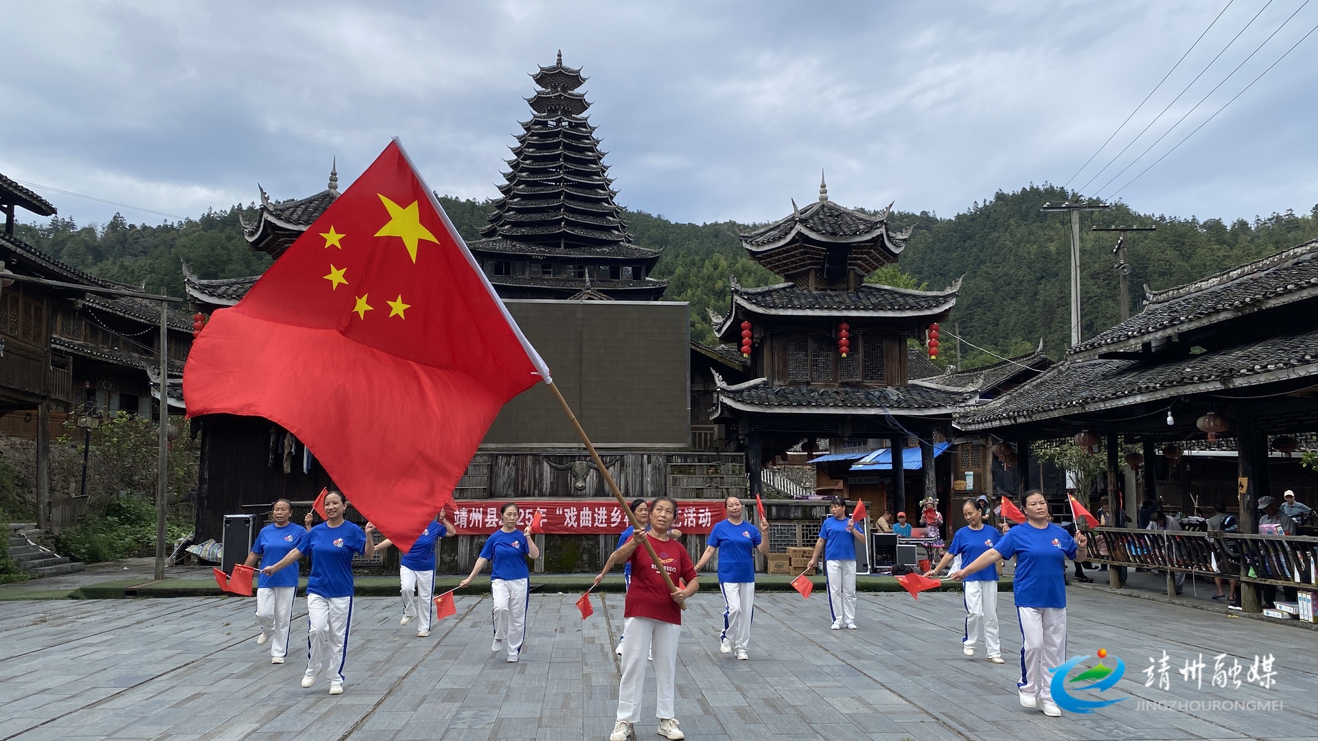 在风雅荟萃·苗韵艺术展环节,苗寨魅力进一步绽放。地笋村村民带来的苗族传统歌舞满含乡土气息,生动展现苗族同胞的热情;县文化馆的“送戏下乡”活动也来到地笋,为村民及游客们送上一场精彩的文艺表演。飘扬的五星红旗让国庆氛围愈发浓厚,台下掌声与欢呼声此起彼伏。