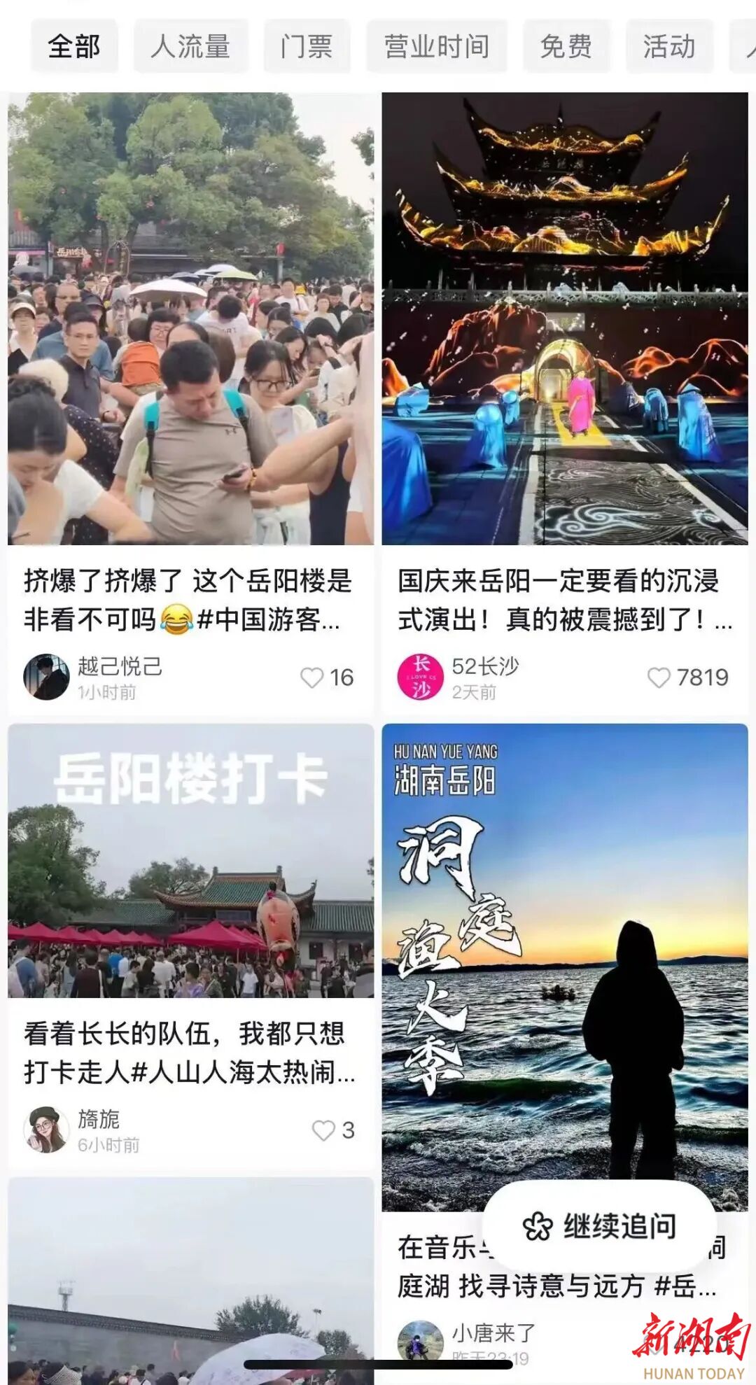 打开任意新媒体平台,输入关键词“岳阳”,首先跳出来的,就是大量的岳阳楼视频作品,诸如:被挤爆了,被震撼了,找寻诗意和远方,望着长长的队伍产生国庆排队的绝望感。来到岳阳,不登此楼非好汉,好汉犹吟墨韵长。