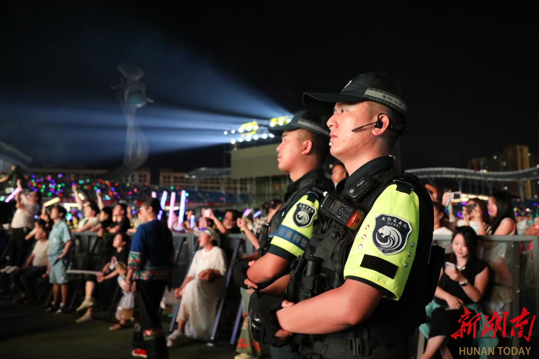 新湖南客户端10月5日讯(通讯员 张红军 张含 吴君美 张子琪)10月2日至3日,神秘湘西音乐节在湘西土家族苗族自治州吉首市举行。当镜头从闪耀的艺人嘉宾,缓缓移向场内外忙碌的身影,在璀璨舞台背后,一道道藏蓝“警”色愈发醒目。他们秉持细致、精致、极致的工作作风,严抓风险排查、现场管控、交通保障、应急处置等多项安保工作,为音乐盛会筑起坚实的安全屏障。