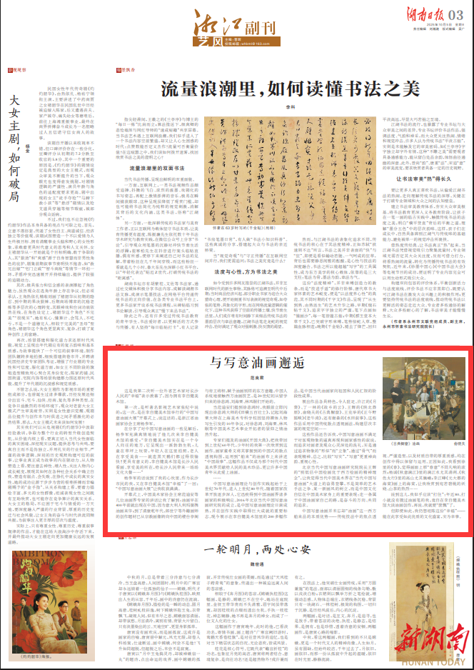 专家们提及的油画《开国大典》,把我带回到上世纪60年代,少年时的我第一次欣赏到这画作。画家董希文将其掌握到的中国式的散点透视构图,运用到“舶来”的油画布上来讲述“中国故事”。这幅作品不仅成为那个时代中国美术界贡献给人民的美术珍品,更让许多中国青年从此爱上油画。