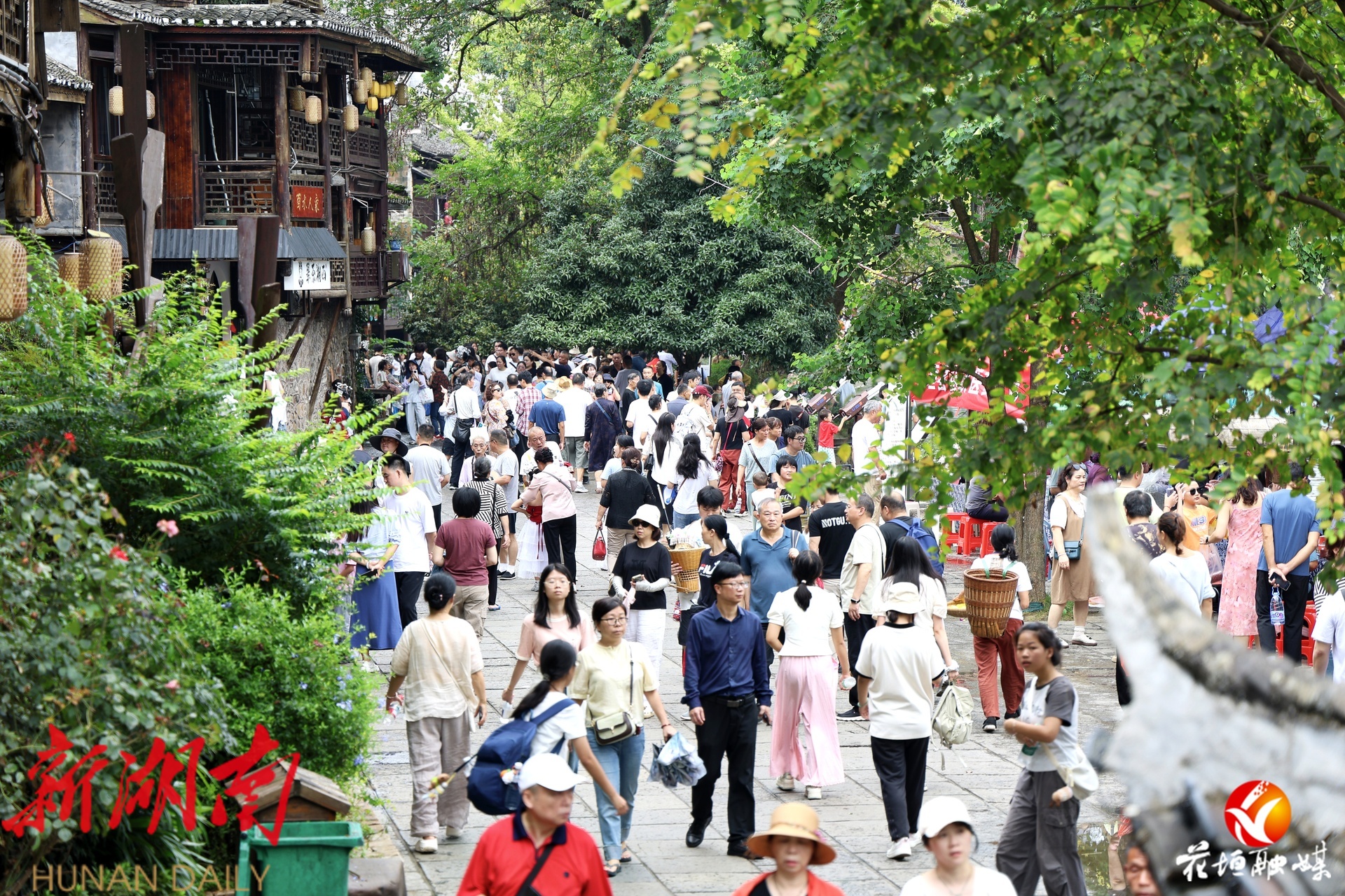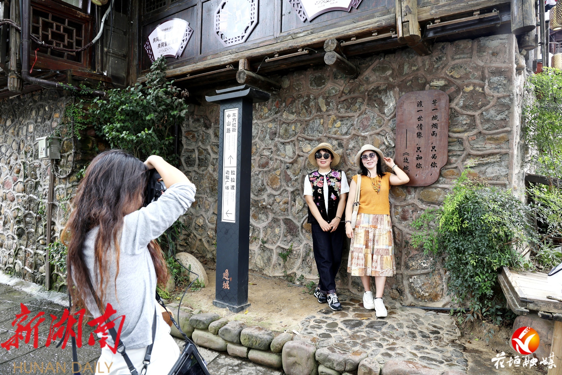 新湖南客户端10月5日讯(通讯员 林彬 简彪 吴思齐)国庆期间,湘西土家族苗族自治州花垣县边城镇茶峒景区吸引了众多文学爱好者前来探访。景区深入挖掘沈从文先生名著《边城》的文化内涵,通过设置主题打卡点、打造特色书屋等方式,将浓郁的文学气息融入景区的每个角落,为游客带来一场“可触摸”的文学之旅。