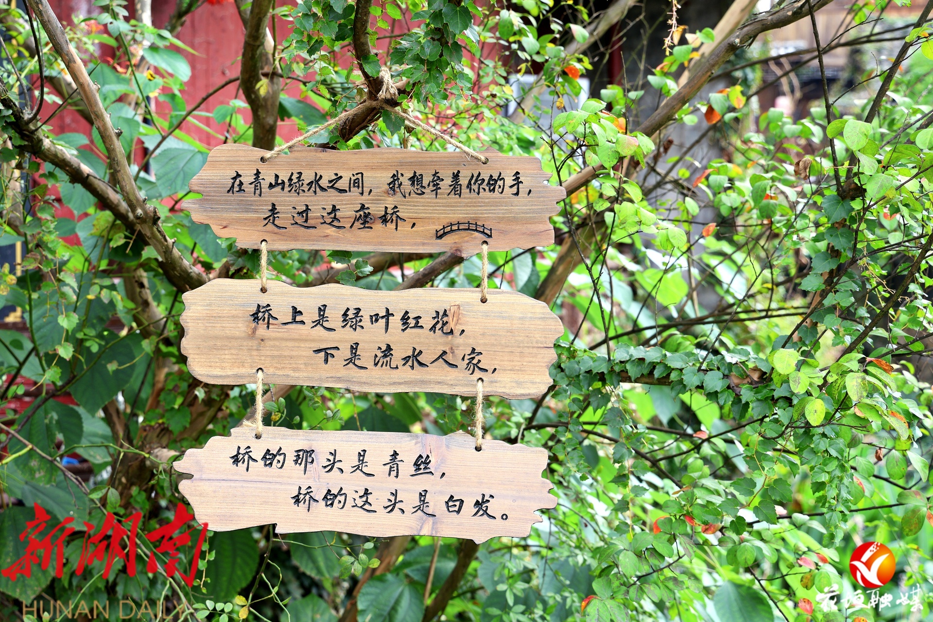 沿江漫步,精心设计的《边城》主题打卡点格外引人注目。“我知道你会来,所以我等。”这些小说中脍炙人口的句子被镌刻在木质标牌与石墙上,与古镇的吊脚楼、青山绿水相映成趣,成为游客拍照留念的热门背景。