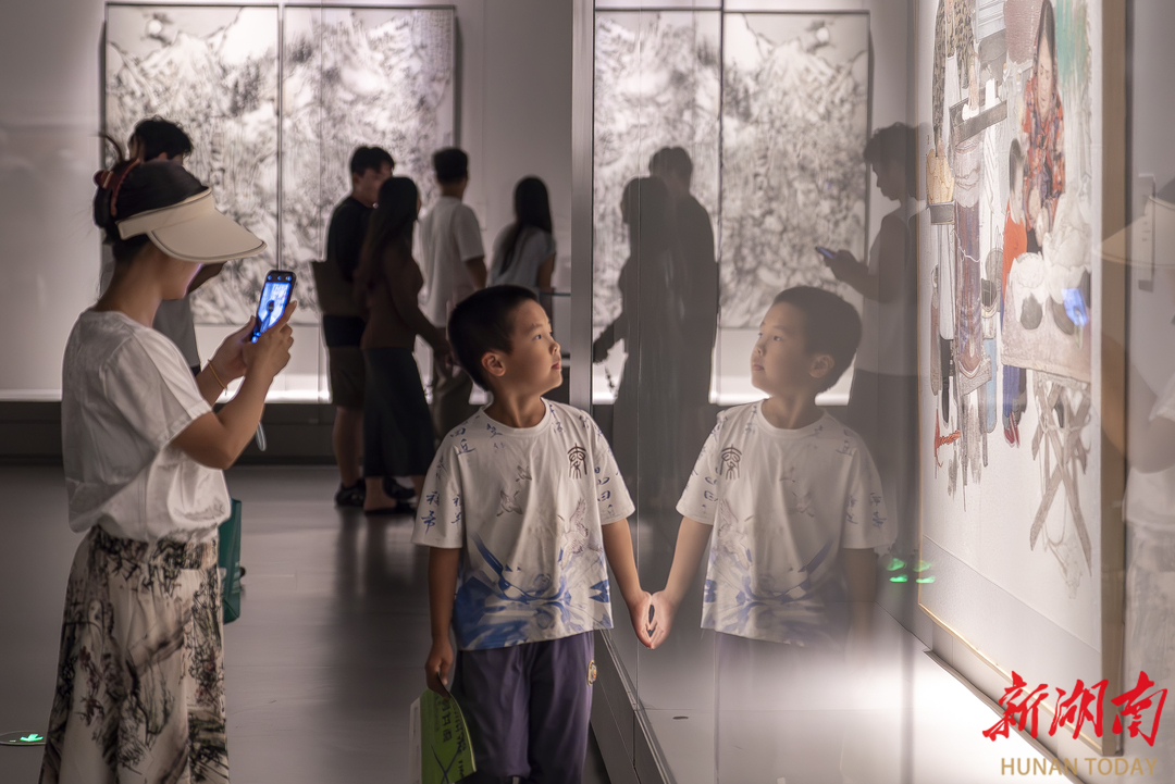 10月5日,游客在湖南美术馆参观。国庆中秋假期,不少市民和游客选择到访各类博物馆、美术馆,在文化的浸润中度过假期。 湖南日报全媒体记者 童臻熙 摄