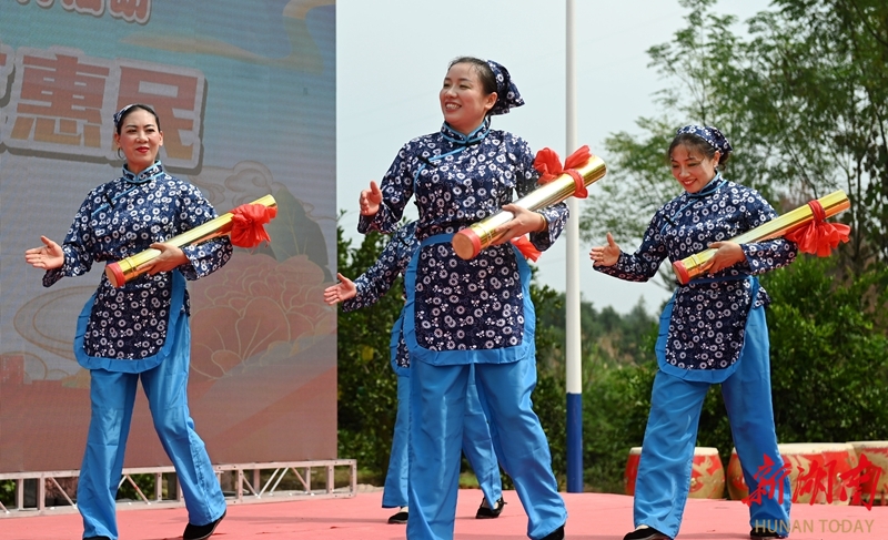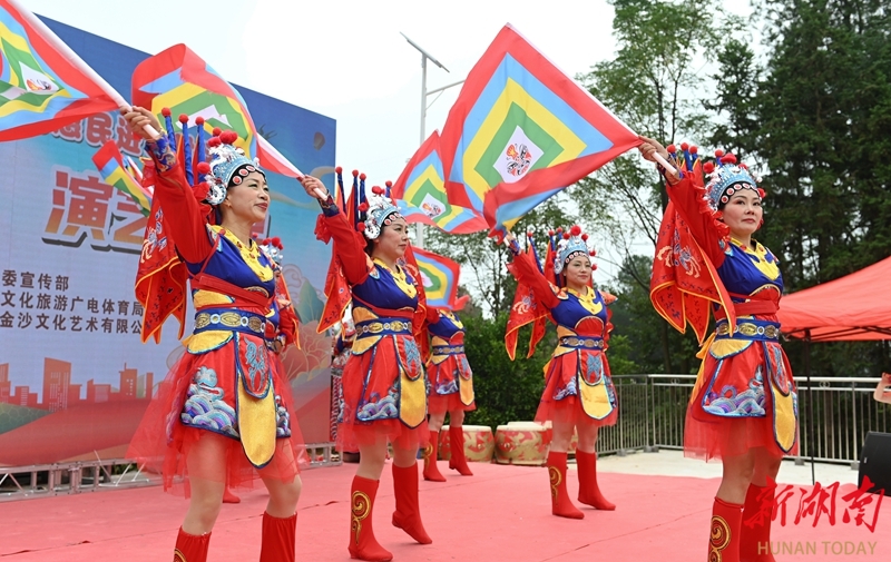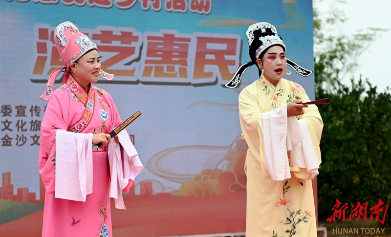 10月5日,洞口县南泥园艺场,演员在表演文艺节目。国庆中秋假期,该县组织文艺工作者深入乡村开展送戏下乡演出活动,丰富群众假期文化生活。滕治中 摄(湖南图片库)