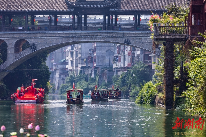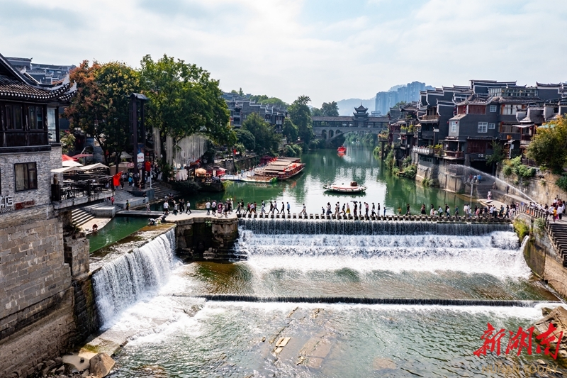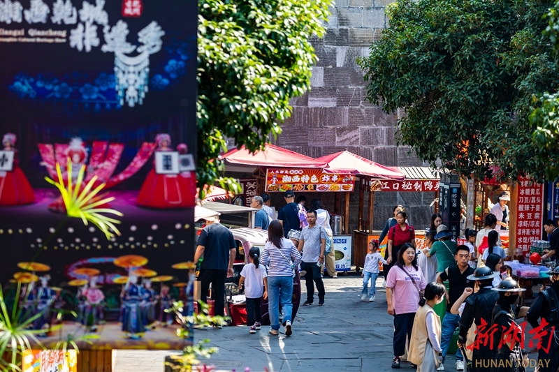 10月5日,游客在吉首市乾州古城休闲游玩。国庆中秋假期,众多游客来到乾州古城休闲游玩,享受美好假期。刘振军 摄(湖南图片库)