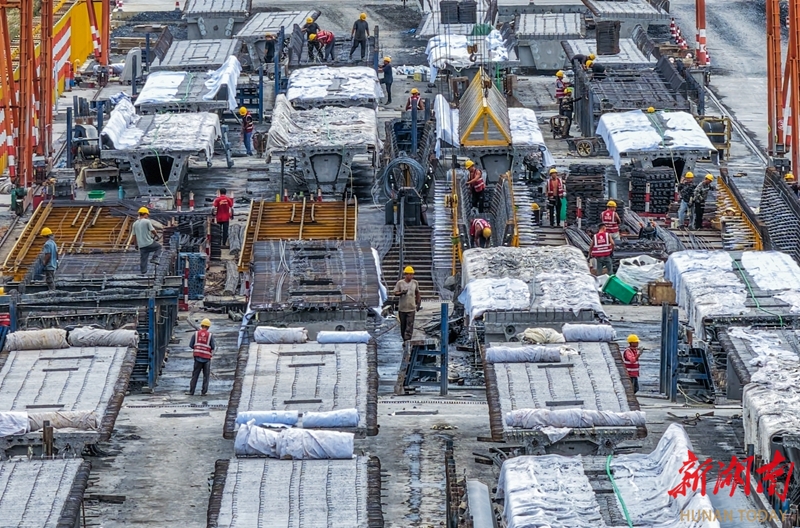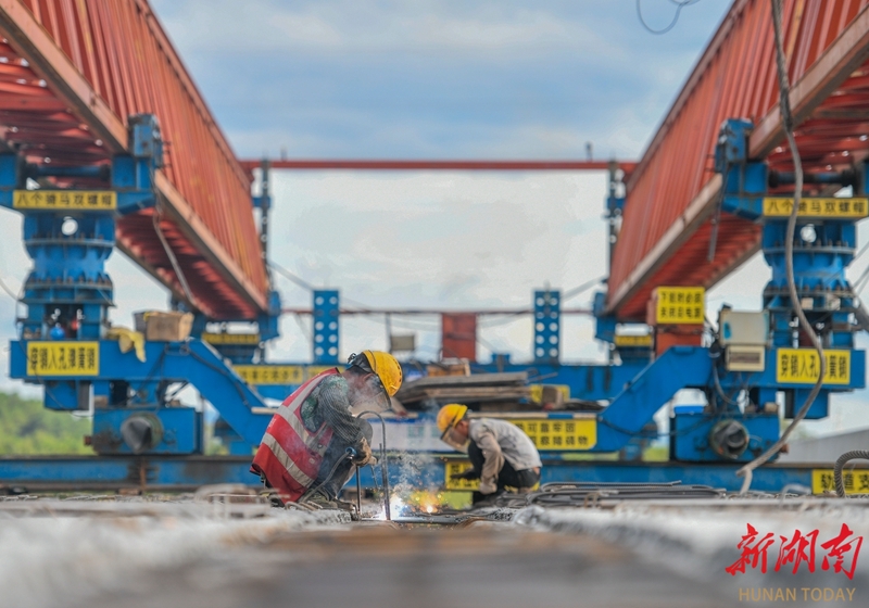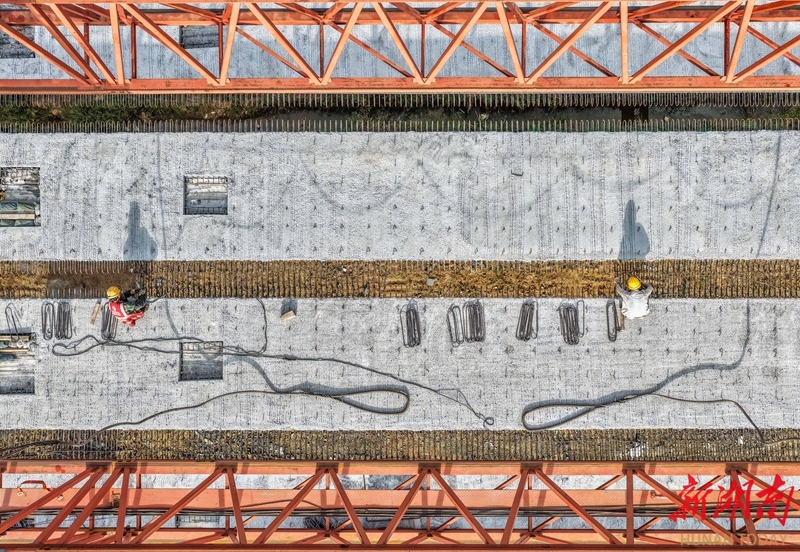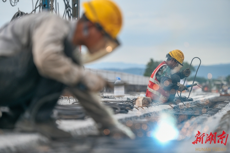 10月5日,零(陵)道(县)高速公路道县段建设工地,工人在进行桥面施工。国庆中秋假期,零道高速公路建设者坚守在施工生产一线,抢工期、保质量,全力推进项目建设。蒋克青 摄(湖南图片库)