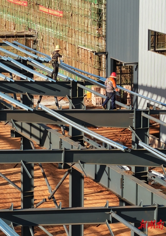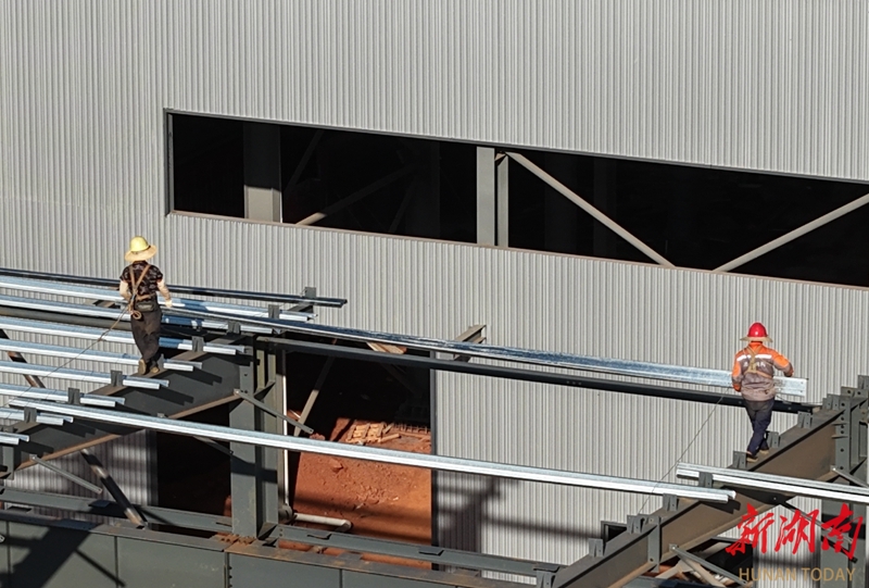 10月5日,嘉禾高新区中毅达标准厂房建设现场,工人在加紧施工作业。国庆中秋假期,该项目工人全力投入施工作业中,为工程早日完工打好基础。黄春涛 摄(湖南图片库)
