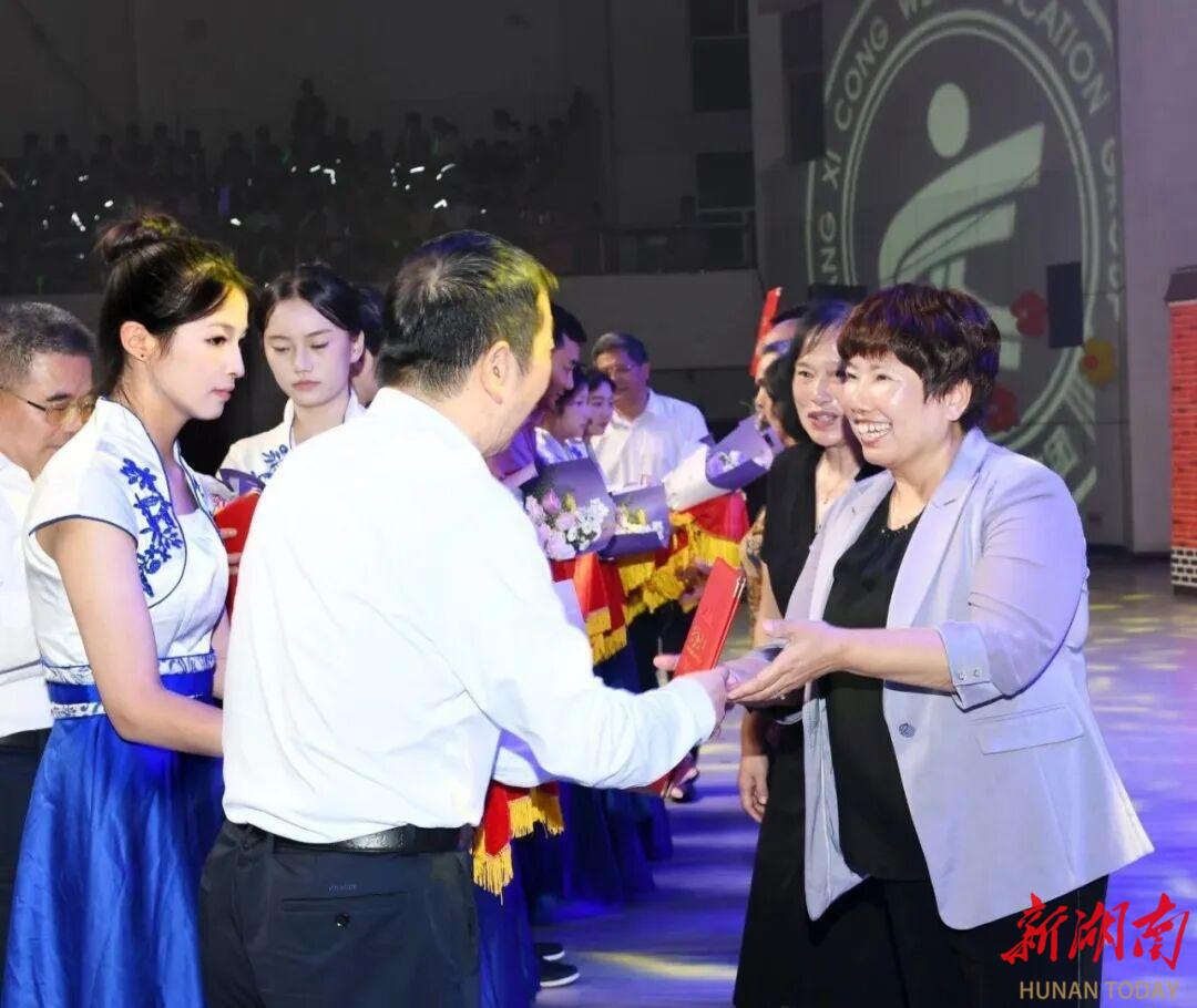 晚会的“荣誉表彰”与“心声表达”环节,为历任校长颁发“桃李芬芳传承奖”,感谢他们在不同时期为学校发展奠定的坚实基础。