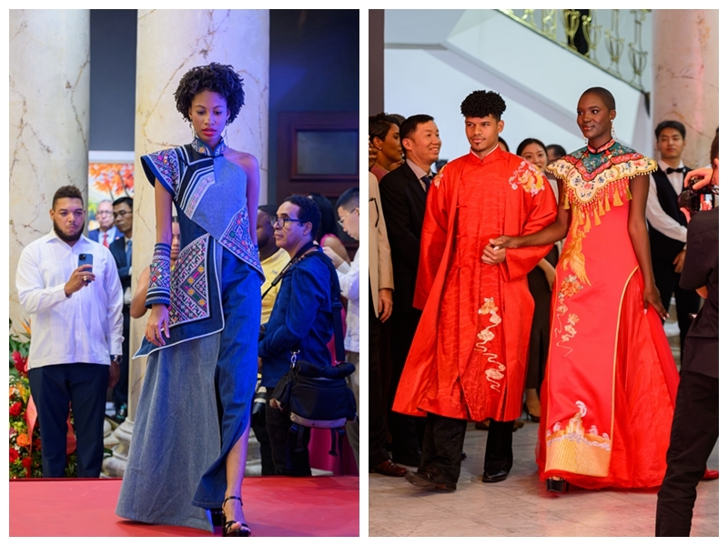 新中式服饰展《芙蓉锦瑟》则创新融合“中式美学”与“国乐湘韵”,以衣为画,以乐为魂。“芙蓉”凝结湖南千年芬芳,“锦瑟”象征国乐典雅气韵。服装由湖南艺术职业学院教授、一级舞美设计师周朝晖融合湖南少数民族织绣工艺为此次出访专题设计,音乐由湖南艺术职业学院一级演奏员蔡霞领衔戏剧学院音乐团队原创,并特邀三国模特身着华服走秀。锦瑟和鸣、中西交汇,碰撞出令人惊叹的艺术火花。多米尼加国家艺术剧院院长萨连特激动地表示:“东方美学在此刻拥有了穿透心灵的现代表达,古典与现代的交织,不仅让我领略到中华服饰与民乐的非凡魅力,也彻底刷新了我对中国艺术的认知。”
