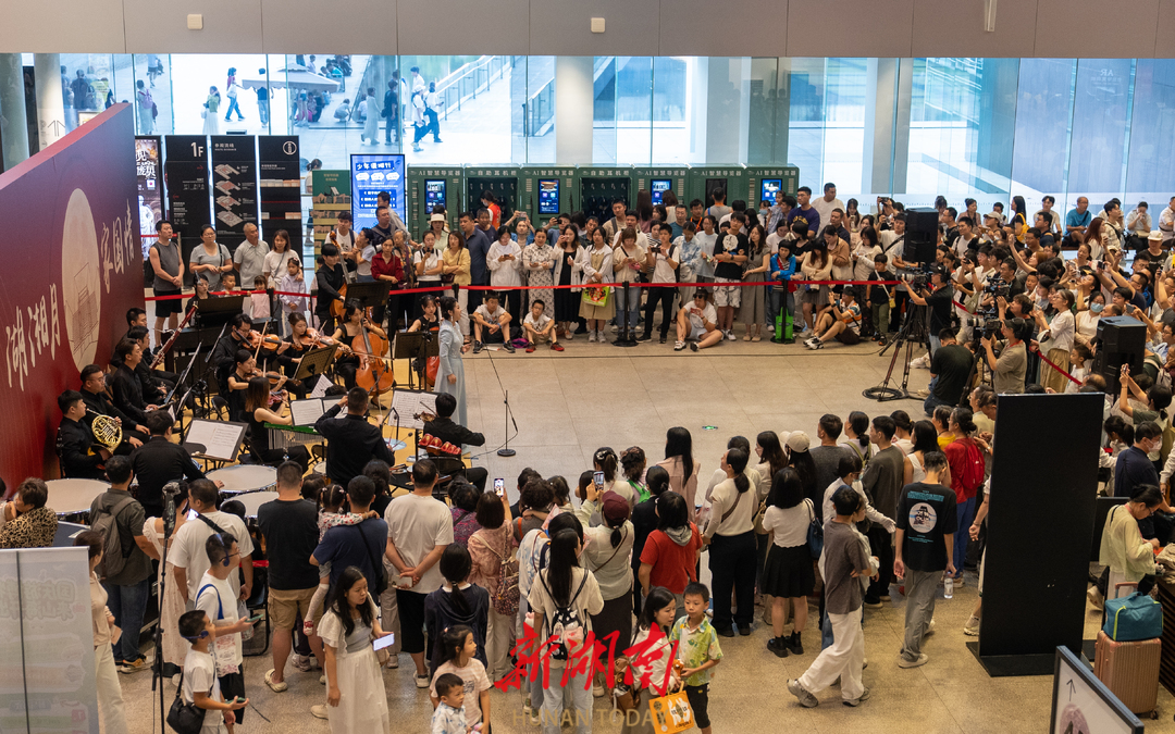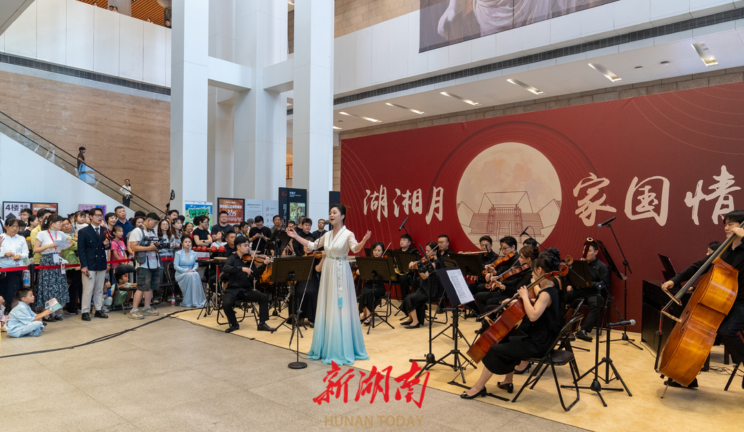 湖南日报·新湖南客户端10月7日讯(记者 龙文泱 摄影记者 傅聪 通讯员 赵叶轩)博物馆里庆中秋,赏月色、品湘韵、抒发家国情怀。10月6日,由长沙交响乐团Melete室内乐团演奏的“湖湘月·家国情——2025湘博主题音乐会”在湖南博物院上演。