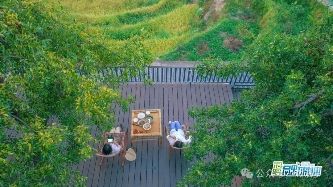 如果想躲开人潮,汨罗的深山民宿也是绝佳选择。位于弼时镇大龙山村的“梯山云境”民宿,国庆前就被订满。“早上听着鸟叫起床,白天在这里爬山、放空、体验农事,晚上嗨歌、露营,尽享美食。”来自广州的游客林女士坐在民宿的观景台,面前摆着刚泡好的本地茶,格外享受。