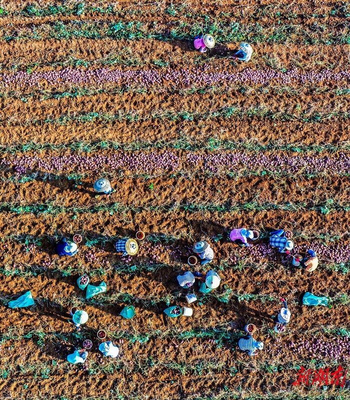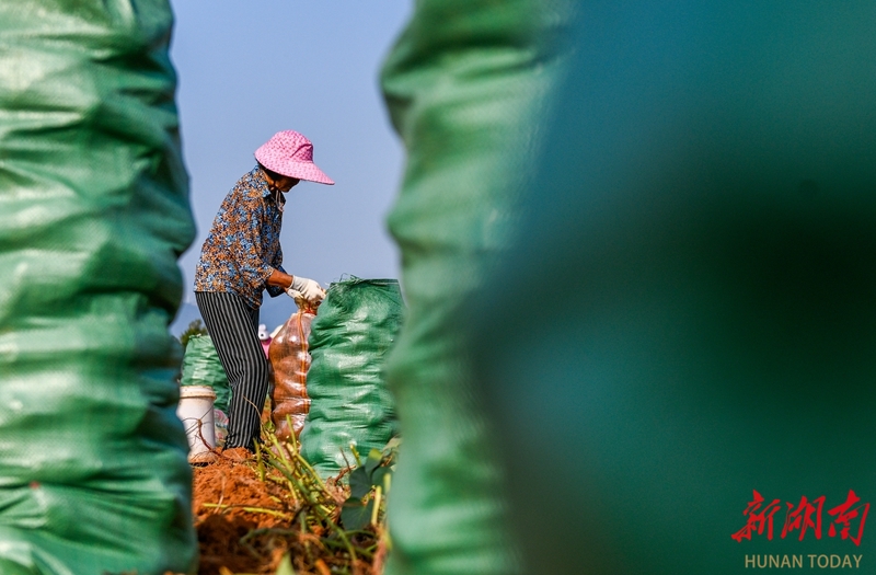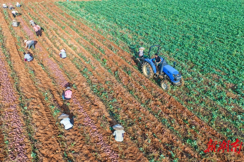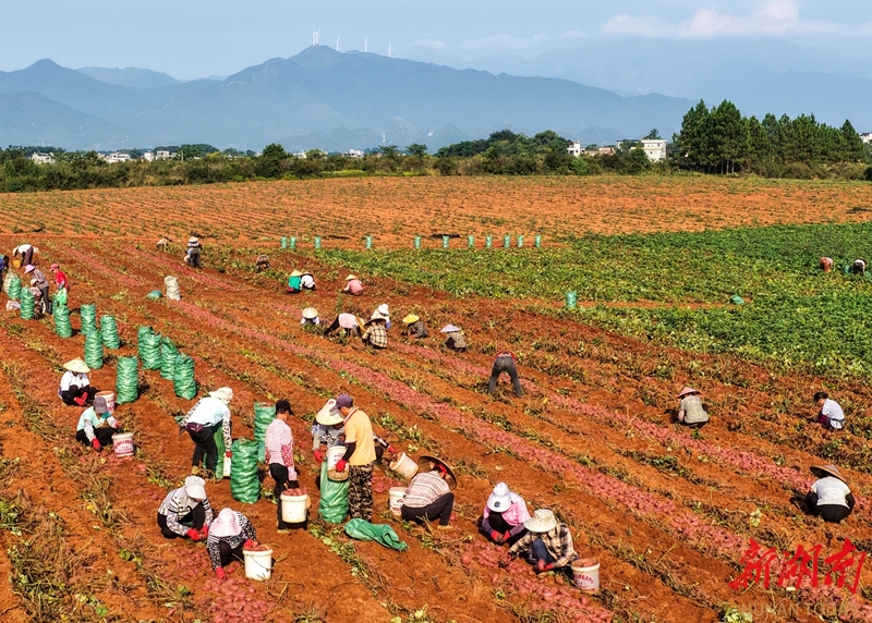 10月8日,道县祥霖铺镇秀水洞村,村民在采收紫薯。时下,该县种植的紫薯迎来采收季,当地农民忙着采挖、分拣、打包、转运紫薯,供应市场。蒋克青 摄(湖南图片库)