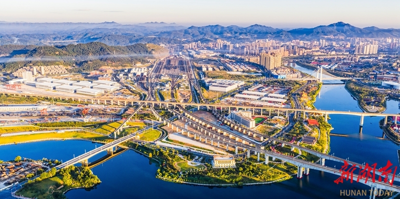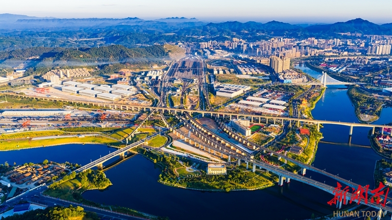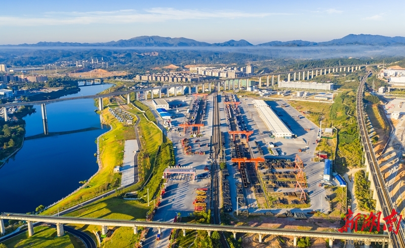 10月7日,俯拍繁忙的怀化国际陆港货场。怀化是西部陆海新通道“13+2”省际协商合作机制成员之一,也是湖南唯一面向东盟的货运集结中心。目前,怀化国际陆港已开拓北部湾铁海联运及中老、中越等7条国际物流大通道。田文国 摄(湖南图片库)