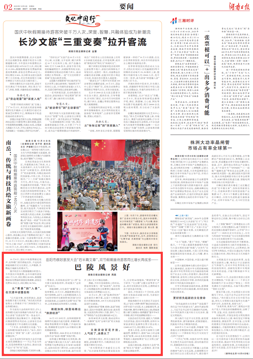 岳阳市做好旅发大会“后半篇文章”,双节假期接待游客同比增长两成多——