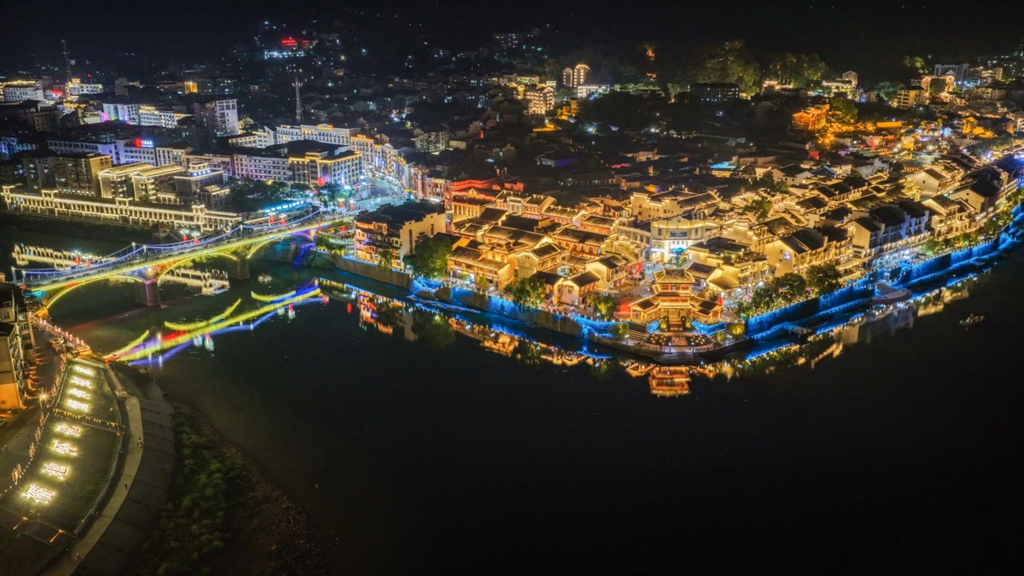 与此同时,沅、巫两水沿岸的夜景灯光秀持续点亮古城夜空,科技与艺术交融的光影勾勒出屈子江阁的典雅轮廓,音乐喷泉随旋律舞动,灯光水秀如飞瀑倾泻,构成一幅流动的水乡画卷。游客或聚集江边码头,或驻足观景平台,在璀璨灯火中感受古城与山水的和谐交融,夜间客流的持续攀升也带动周边酒店、民宿 “夜夜爆满”。