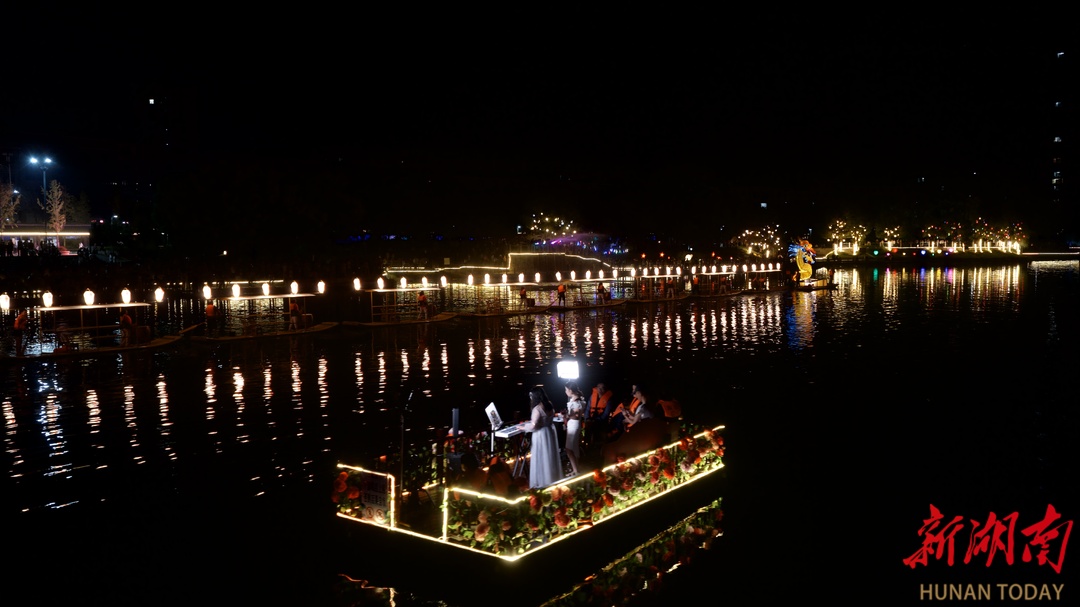 国庆中秋双节期间,由66条竹筏串联而成的500米长水上板板龙灯成为最受欢迎的文旅项目,“白天逛景区、晚上赏龙灯”是游客游览慈利的新方式。