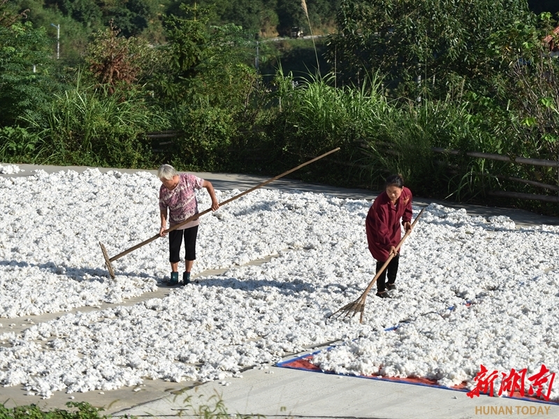 晨光中,常宁市白沙镇光荣村棉花基地,雪白的棉朵缀满枝头。数十名村民弯腰穿梭于田间,双手飞快地将雪白的棉桃摘入袋中。光荣村通过科学规划管控区土地用途,盘活了土地资源,实现了经济效益与生态效益双重提升。今年,该村棉花总产量突破60万斤,棉田亩均收益600元左右。