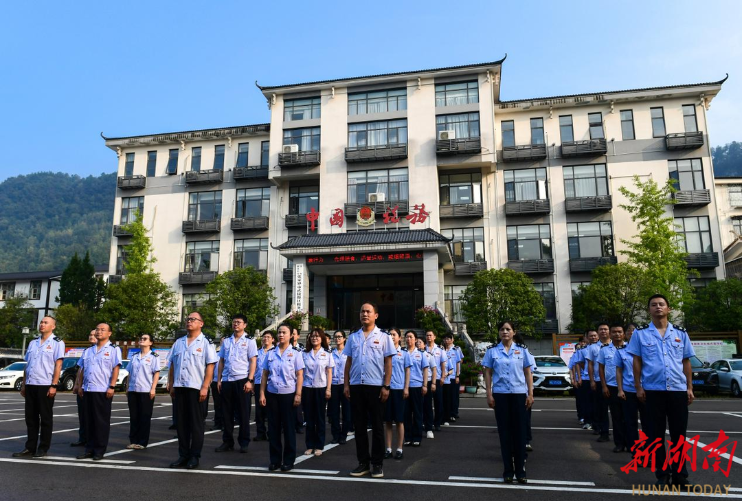 湖南日报·新湖南客户端10月9日讯(通讯员 张根银)国旗飘扬,国歌嘹亮。10月9日,是国庆假期后的首个工作日,武陵源区税务局举行升国旗仪式,热烈庆祝中华人民共和国成立76周年。