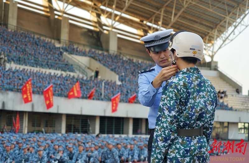10月9日,中南大学体育场,长沙交警指导新生如何正确佩戴安全头盔。当天,长沙交警与中南大学联合开展“开启安全新学期 守护青春每一步”交通安全宣传活动。通过“交通标语你比我猜”“盲区体验”“戴头盔比赛”“骑单车比赛”等多个趣味互动环节,提升学生交通安全意识与自我防护能力。湖南日报全媒体记者 徐行 通讯员 石双权 摄影报道
