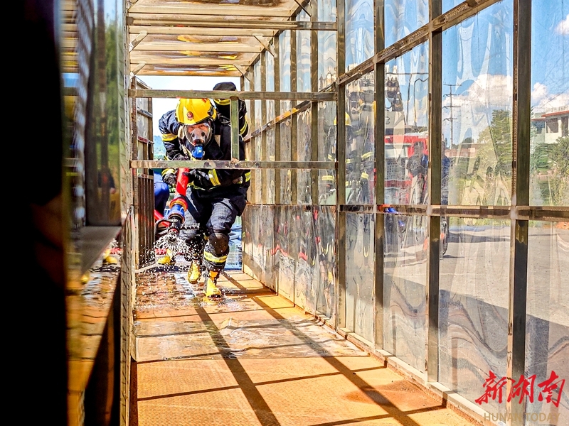 10月9日,嘉禾县消防救援大队开展日常实战化训练,围绕纵深灭火救人、自建房火灾扑救等科目,在模拟复杂环境中开展快速破拆、强攻灭火与搜救转移等训练,全面提升消防员协同作战与应急处置能力。骆静 摄(湖南图片库)