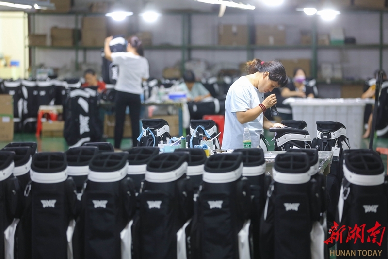 10月9日,隆回高新技术产业开发区隆回县三百运动用品有限公司,工人在生产线上忙碌作业。“双节”假期结束,隆回县各企业开足马力,全力冲刺四季度。曾勇 宁其风 摄影报道(湖南图片库)