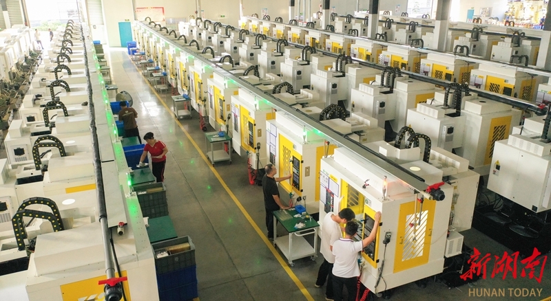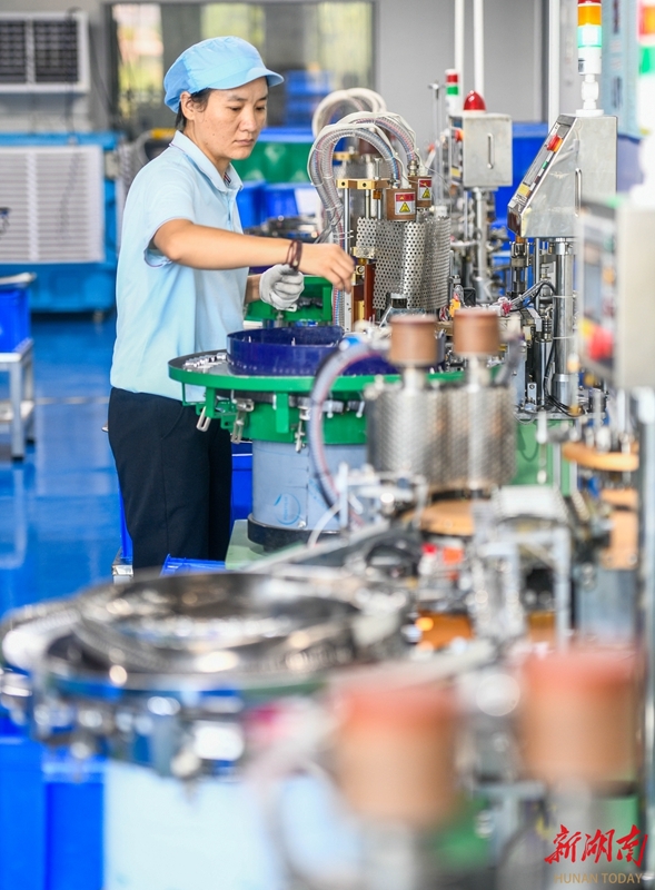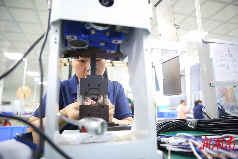 10月9日,隆回高新技术产业开发区湖南三能汽车零部件有限公司线材生产车间,工人在生产线上忙碌作业。“双节”假期结束,隆回县各企业开足马力,全力冲刺四季度。曾勇 宁其风 摄影报道(湖南图片库)