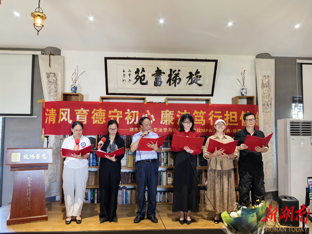 为涵养公共管理专业研究生廉洁素养与使命担当,筑牢“为人民服务”职业根基,10月6日,湖南科技大学MPA教育中心组织2025级公共管理研究生赴窑湾历史文化街区旋梯书苑·毛泽东诗词陈列馆开展“读经典・颂廉洁”教育活动。