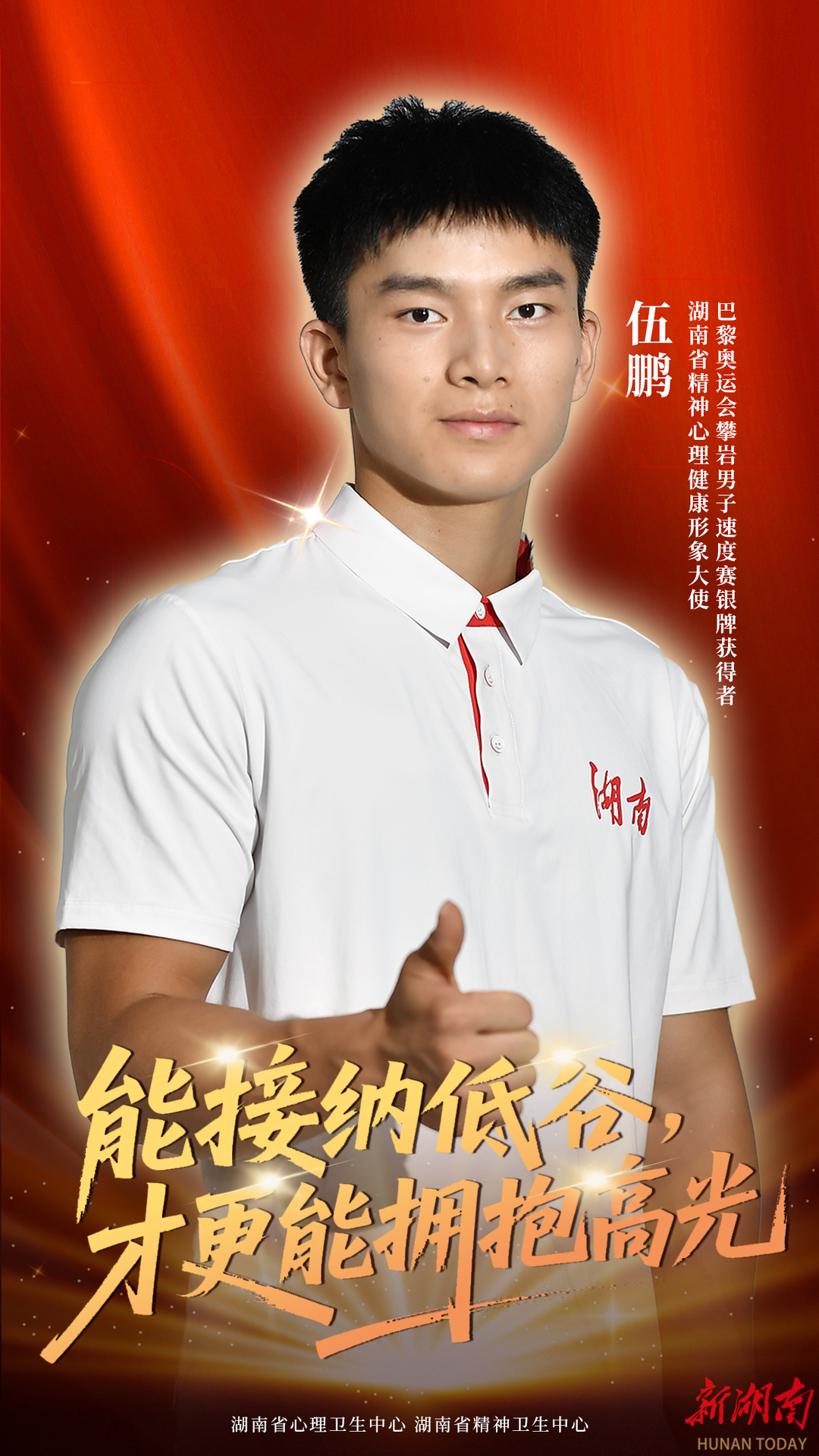 与此同时,湖南攀岩运动员、巴黎奥运会攀岩男子速度赛银牌获得者伍鹏,担任湖南省精神心理健康形象大使。